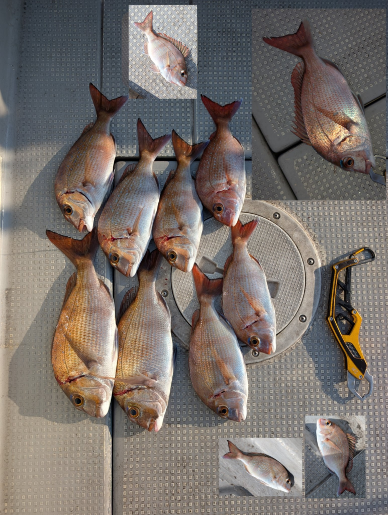 朝の段階では良型の気配はやや薄めでしたが、小型〜中型の反応は安定しており、各ポイントでマダイの顔を見ることができました。