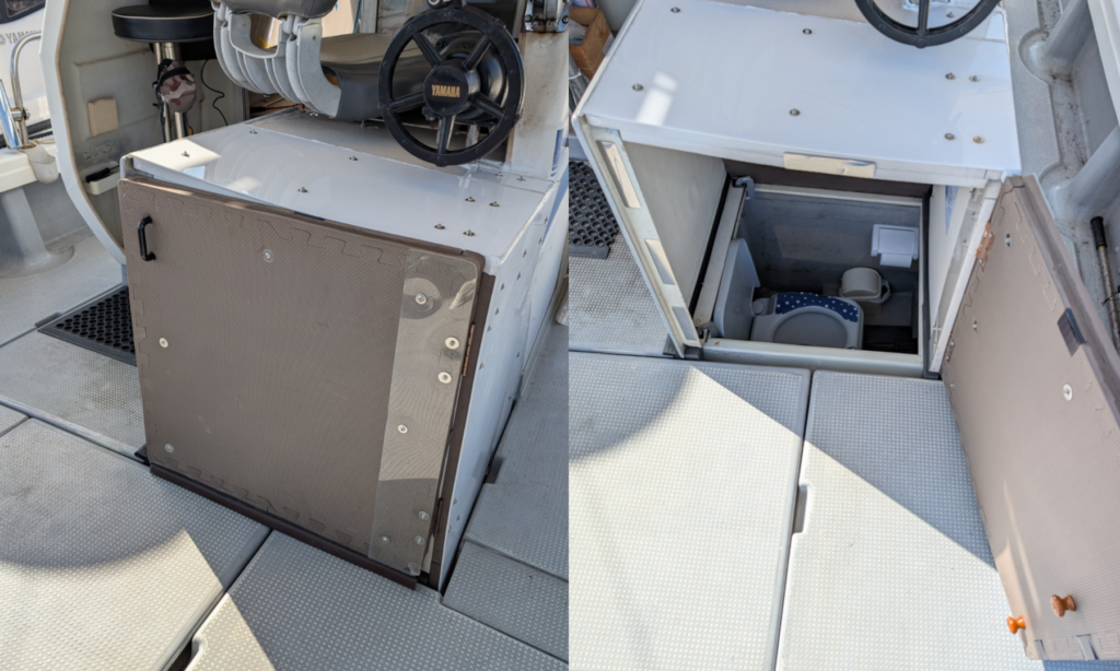 トモ(船の後方)の鉄棒で用を足して下さい。